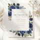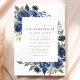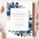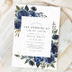 Navy Blue Flowers Watercolor Floral Rustic Wedding Invitation
