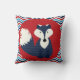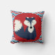 Kids who love foxes and bright, fun designs will love this cute fox throw pillow featuring a navy blue chevron stripe fox on a red circle with a chevron striped red, white, blue, and navy blue background. Perfect for his bedroom, the playroom, nursery, or recreation room, this fox pillow is sure to be a great addition!
