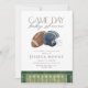 This navy-and-brown football baby shower invitation combines watercolor texture with elegant typography. A perfect choice for sports-loving parents expecting a baby boy. The clean “Game Day” design makes it timeless and stylish for any event.