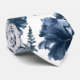A classic navy blue and white wedding neck tie featuring a watercolor-painted assembly of garden florals including peonies in shades of navy blue, muted navy, dusty greys and dusty blues. A classic navy wedding neck tie.
