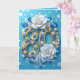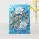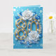 This elegant 80th birthday card design features the number "80" crafted in golden filigree, adorned with luminous pearls and radiant navy blue gems. Two pristine white roses, symbols of grace, rest among sparkling diamond-like accents and pearls. The light blue backdrop with a bokeh-like pattern creates a dreamy, celebratory feel. This is a jewel box of sophistication and glamour, perfect for a momentous 80th birthday. The text on the front and inside is fully customisable, allowing you to create a truly unique keepsake.