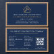 Promote your general contracting services with this modern navy blue business card featuring a wood-grain accent and integrated QR code for instant, scannable contact access. The refined color palette and natural texture blend professionalism with craftsmanship, while the clean layout highlights your name, license details, and essential services. Ideal for builders, remodelers, and construction professionals who want a polished, print-ready card that stands out on job sites and in client meetings.