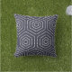 Navy Blue Japanese hexagonal geometric pattern pillow for outdoor use. Made in the USA. Vivid high quality printing. UV and mildew resistant garden or patio pillows in with modern geometric designs in vibrant summer colours. Available in 16" or 20" square and 13" by 21" rectangular sizes. Insert included. (Also available as an interior couch or sofa throw pillow, just select cotton or polyester from the Fabric tab).