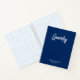Customise the navy blue background colour, or white modern brush script style and size as needed to create your own class notes blank notebook.