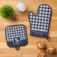 Navy Blue Gingham Plaid Chequered Monogrammed Oven Mitt & Pot Holder Set