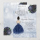 Navy Blue Girl Dress Glitter Bokeh Sweet 16 Invitation