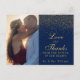 Navy Blue & Glam Gold Confetti Wedding Thank You Postcard