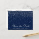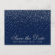 Navy Blue & Glam Silver Confetti Save The Date Announcement Postcard