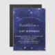 A modern, stylish and glamourous invitation magnet for a 21st (or any age) birthday party. A navy blue background, decorated with faux glitter dust. The blue colour is uneven. Personalise and add your name and party details.