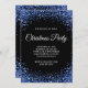 Navy Blue Glitter Border Black Christmas Party Invitation