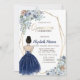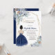 Navy Blue Glitter Dress, Blue Flowers Quinceanera Invitation