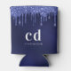 A navy blue background with an elegant faux glitter drips, paint drip look. The blue colour is uneven. Personalise and add a name and monogram initials. The name is written in white with a modern block letters.