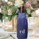 A navy blue background with an elegant faux glitter drips, paint drip look. The blue colour is uneven. Personalise and add a name and monogram initials. The name is written in white with modern block letters.