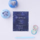 A navy blue background, decorated with faux glitter dust, sparkles. The blue colour is uneven. Personalise and add your names and details.