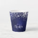 Navy blue glitter monogram name script latte mug