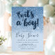 Add a touch of sparkle to your celebration with this dazzling baby shower invitation. Featuring an ombre effect in navy blue and baby blue with glitter accents, this "It’s a Boy!" design creates a glamourous and festive atmosphere perfect for welcoming a baby boy. The shimmering style and playful footprint detail make this invitation ideal for a modern, chic shower. Whether you’re hosting a gathering with a touch of sparkle or a sophisticated evening event, this design captures the excitement and joy of this special occasion.