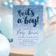 Navy Blue Glitter Ombre It's A Boy Baby Shower Invitation