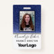 Faux navy blue glitter sparkles delightfully behind a photo template with black and white frame. Easily update the name and professional job title for each custom employee badge. There is also space for a company logo—delete to leave blank. Backside features more faux glitter and an image template perfect for employee bar codes. Available in many other styles and colours.