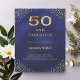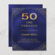 A navy blue, uneven coloured background. Decorated with golden corners. Personalise and add a name and party details.