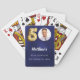 For a 50th birthday party. A navy blue uneven coloured background. Personalise and add a name and photo, date.