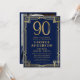 Navy Blue Gold 90th Birthday Photo Surprise Party Invitation