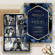 Navy Blue Gold Abstract Fluid Ink Photo Wedding Invitation