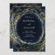 Navy Blue Gold Abstract Lights Geometric Wedding Invitation