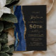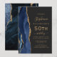 Navy Blue Gold Agate Dark 50th Birthday Party Invitation