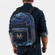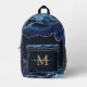Navy Blue Gold Agate Geode Monogram Script Name Printed Backpack