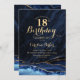 Navy Blue Gold Agate Marble 18th Birthday Invitation