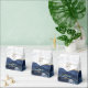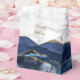 This elegant modern favour box features a navy blue watercolor agate design trimmed with gold faux glitter. Personalise it with the names of the bride and groom in gold-coloured handwriting script over a large, pale grey ampersand, along with the wedding date in black below, on a grey and white marble background.