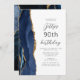 Navy Blue Gold Agate Script 90th Birthday Invitation