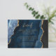 This elegant modern wedding details enclosure card features a navy blue watercolor agate background image trimmed with faux gold glitter. The title appears in handwriting script, with customisable text below in gold-coloured copperplate font. The reverse side features a matching navy blue and gold agate design.