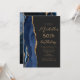 Navy Blue Gold Agate Slate Script 50th Birthday Invitation
