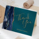 Navy Blue Gold Agate Teal Wedding Thank You Card