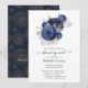 Trendy navy blue, gold and silver rose baby or bridal shower by mail invitation with elegant typography customisable to your event specifics.