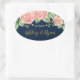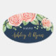 Navy Blue Gold Blush Floral Wedding Classic Oval Sticker.