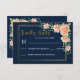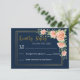 Navy Blue Gold Blush Floral Wedding RSVP Card
