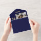 Navy blue gold boho simple monogram photo wedding all in one invitation