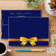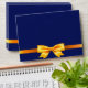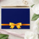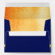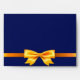 Elegant, classic, glamourous and feminine style envelope. Outside: A navy blue coloured background. A gold coloured ribbon and bow. Inside: A shiny rustic faux gold metallic looking background. Back: Templates for names and address, golden letters. Perfect for wedding invitations, Save the Date og Thank You cards.
