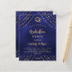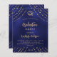 A navy blue background decorated with faux gold stars and a cap. The blue colour is uneven. Personalise and add a name, party details and year. The text Graduation and the name are written with modern hand lettered style script.