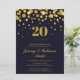 Navy Blue & Gold Confetti 20th wedding anniversary Invitation