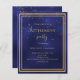 Celebrate the special milestone with this elegant retirement party invitation. Featuring a rich navy blue background with an uneven texture, this design is highlighted by golden frames and sparkling golden confetti sprinkles. The golden-coloured lettering adds a touch of sophistication, making it perfect for the occasion. Personalise it by adding the retiree's name and all your party details to create a truly unique invitation. Available in various paper types and formats, this invitation sets the tone for a memorable celebration.