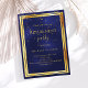 Celebrate the special milestone with this elegant retirement party invitation. Featuring a rich navy blue background with an uneven texture, this design is highlighted by a faux gold frame and sparkling golden confetti sprinkles. The golden-coloured lettering adds a touch of sophistication, making it perfect for the occasion. Personalise it by adding the retiree's name and all your party details to create a truly unique invitation. Available in various paper types and formats, this invitation sets the tone for a memorable celebration.