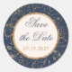 Navy blue, gold, confetti Save the Date Classic Round Sticker