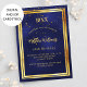 A dark blue, navy blue background. The blue colour is uneven. With a faux gold frame and golden confetti sprinkle, golden coloured letters. Personalise and add year of birth, name, party details.