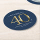 Navy Blue Gold Custom 40th Birthday Party Round Paper Coaster