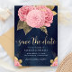 Navy Blue Gold Dusty Pink Floral Wedding Save The Date