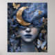 Navy Blue Gold Fantasy Surreal Moon Woman Wall Art