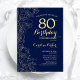 Navy Blue Gold Floral 80th Birthday Party Invitation